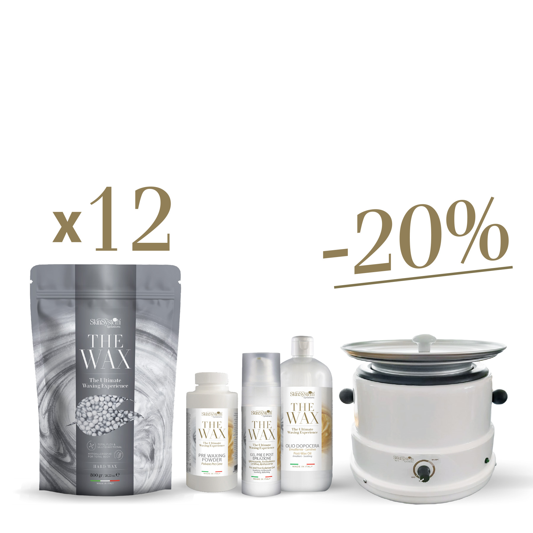 La promo suivante consiste en:12 x The Wax Silver 800g1x Stove 1 Kg avec bol et couvercle1x Pre Waxing Powder The Wax Line1x Pre Waxing Gel The Wax Line1x After Waxing Oil The Wax Line